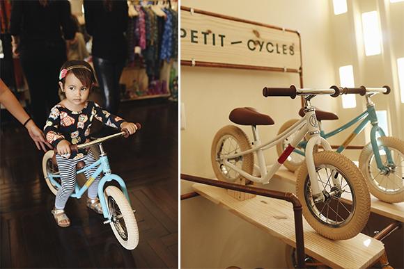 A “Petit Cycles” faz bicicletas de equilíbrio de maneira que a criança tenha os pés livres para ajudar na estabilização, sem o medo de ser atrapalhada pelos pedais. O conceito é justamente dividir em dois momentos o aprendizado dessas atividades complexas, minimizando o trauma dos inúmeros tombos que costumam acontecer no processo e eliminando aquele aterrorizante momento em que os pais soltam os filhos sobre as bicicletas e…tudo dá errado! O aprendizado prazeroso e seguro do equilíbrio sobre duas rodas é, portanto, o objetivo de se usar esse tipo de bicicleta!