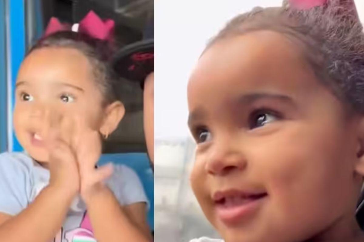 No registro, a menina aparece toda empolgada no transporte, olhando pela janela e batendo palmas. “Eu amo ‘obinus’”, comentou a menina ao tentar dizer a palavra “ônibus”. O pai também comentou que a filha talvez não goste de fazer o passeio no futuro.“Você vai ficar mais emocionada ainda no dia que você pegar o ônibus lotado e chegar por último”, contou Bruno.