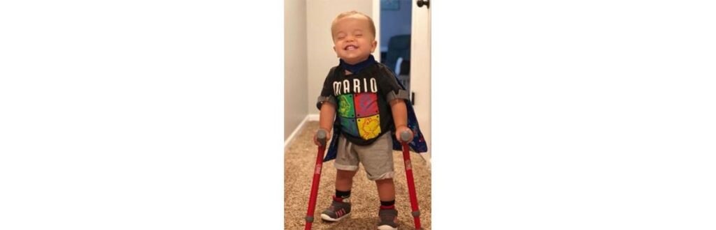 Agora, com 2 anos, o pequeno possui um acompanhamento de um quiroprata e fisioterapeuta e, felizmente, conseguiu andar pela primeira vez sozinho usando muletas. Claro que o momento icônico foi registrado em vídeo pelos pais da criança, Whitney e Adam Dinkel. Nele, Roman aparece todo contente avisando a cadela da família a novidade: “Olha, Maggie! Eu estou andando, Maggie!”.