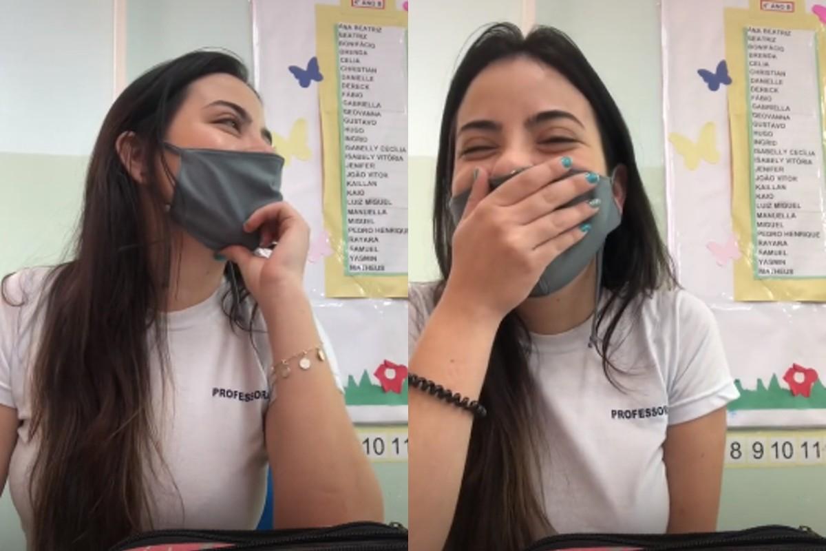 A educadora pediu que os alunos confirmassem a presença na aula citando algum meme. Ela gravou o momento e compartilhou no perfil do TikTok, chamando a atenção de bastante usuários na rede social.
