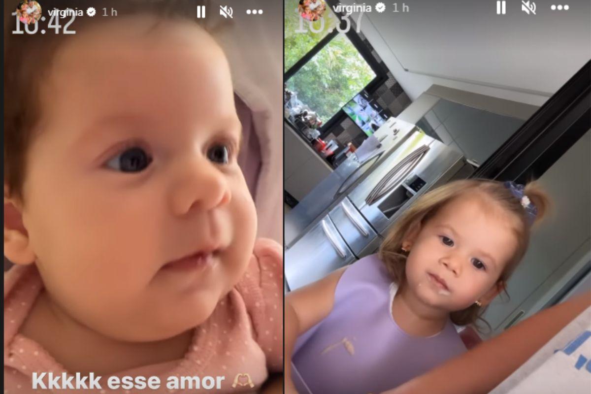 Além de mostrar a reação das filhas, ela fez uma comparação com a filha mais velha, Maria Alice, de 1 ano. Por meio de um vídeo ela desse que a aparência de ambas se iguala a cada dia: “Cada dia mais a cara da sua mãe”, disse Virginia.