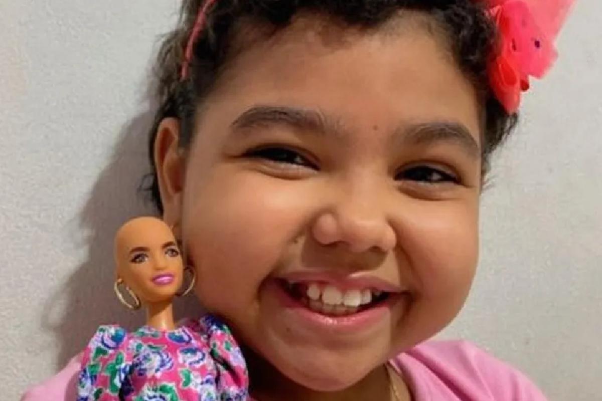 Tratando leucemia, menina de 8 anos se emociona ao ganhar boneca careca de Natal: “Parece comigo”