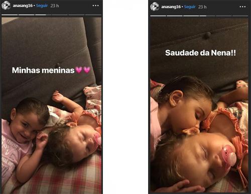 Maria tem 2 anos e a prima mais nova, Madalena tem 1, elas se dão super bem e parecem ser bem carinhosas pelo o que a família posta. Ana postou vários stories com as meninas se divertindo e também uma foto com as duas sentadas no sofá, a imagem foi repostada por Yanna, com a legenda: “Eu não consigo me segurar! Quem aguenta? Quero morder!!