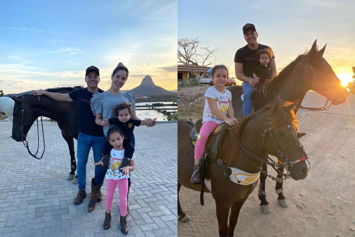 Sua última atualização, em família, foi em Aracoiaba, no Ceará, andando a cavalo ao lado da esposa, Thyane Dantas, e dos dois filhos do casal. O cantor ressaltou: “Final de semana no melhor lugar do mundo”.