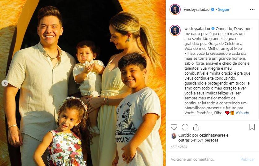 Wesley Safadão comemorou os 9 anos de vida do filho Yhudy (Foto: Reprodução / Instagram @wesleysafadao)