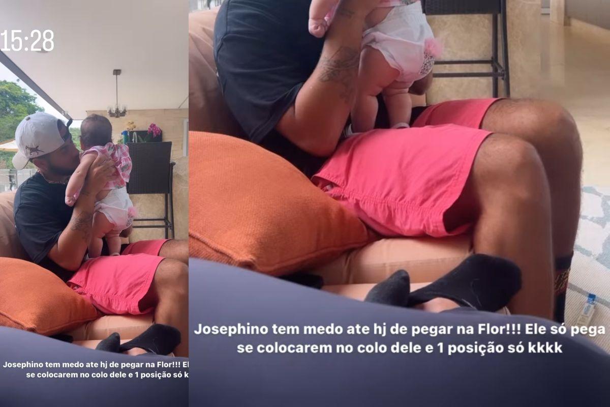 Por meio dos stories, a influenciadora digital, que costuma compartilhar a rotina ao lado da família nas redes sociais, mostrou que Zé Felipe tem medo de pegar a filha mais nova, Maria Flor, no colo.