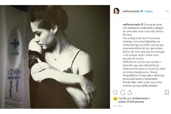 Fernanda Machado, nesta semana, compartilhou com os seguidores um momento complicado que enfrentou: sofrer um aborto espontâneo após 6 semanas de gestação. A atriz explicou: “Resolvi falar sobre a dor que estou vivendo, porque tenho achado exaustivo demais esconder essa dor, exaustivo demais fingir que nada aconteceu”.