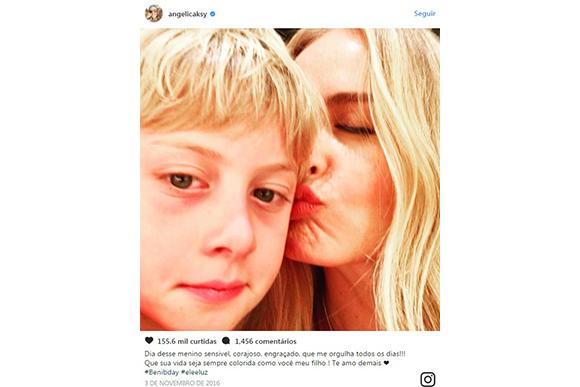 Angélica, mãe de Eva, Benício e Joaquim, apresentadora do programa Estrelas, posta com frequência fotos suas com os filhos. Ela está chegando a 9 milhões de seguidores no Instagram.