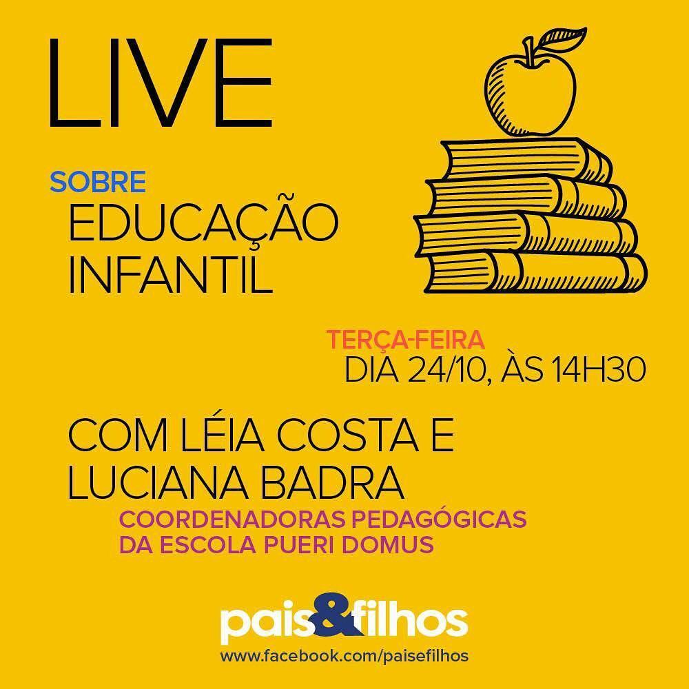 A Pais& Filhos e a escola Pueri Domus realizaram um Live no Facebook para discutir a educação infantil. Nele, as coordenadoras pedagógicas Léia Costa e Luciana Badra falaram sobre assuntos que orbitam o universo das crianças que estão começando a se alfabetizar.