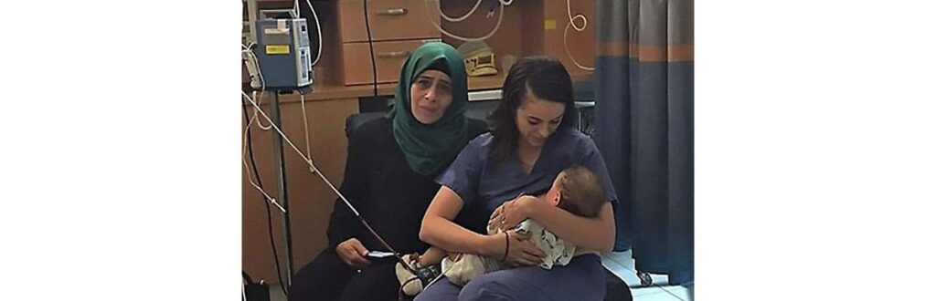 A família de Yaman Abu Ramila, um bebê palestino de 9 meses, sofreu uma acidente em Jerusalém no dia 2 de junho. O pai da criança morreu na hora e a mãe ficou com graves ferimentos na cabeça. Felizmente a criança estava com cinto de segurança e teve apenas alguns arranhões, mas estava com muita fome. A equipe do hospital tentou oferecer mamadeira para Yaman e ele refeitou, estava acostumado com o leite materno.