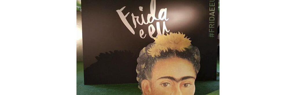 (Parte da exposição onde as crianças podem tirar fotos e aprender sobre a vida da Frida Kahlo/Foto: Giuliana Sona)