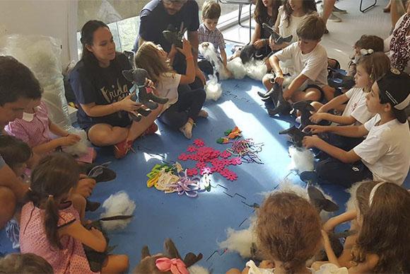 (Oficina para os filhos dos nossos embaixadores, as crianças fizeram um ursinho de pelúcia que a Frida costumava ter quando pequena/ Foto: Giuliana Sona)