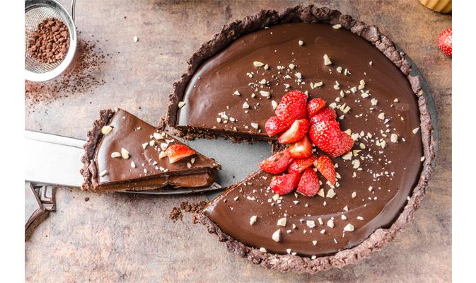 Bata as bolachas em um liquidificador, deixe bem triturada. Coloque as bolachas trituradas em uma vasilha. Derreta a manteiga e despeje-a derretida em cima da bolacha triturada. Derreta o chocolate e em seguida, acrescente o creme de leite. Mexa, até virar um creme. Forre o fundo de uma forma com a bolacha triturada. Despeje o chocolate em cima da bolacha. Em seguida, acrescente os morangos. Deixe na geladeira por 2 horas.