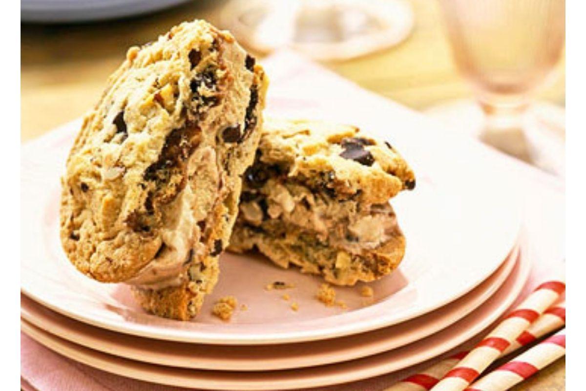 - Misture a geleia com o sorvete de baunilha. Coloque, então, duas colheres de sopa (aproximadamente) entre dois biscoitos. Envolva cada sanduíche em papel filme e deixe no congelador por 2 horas.