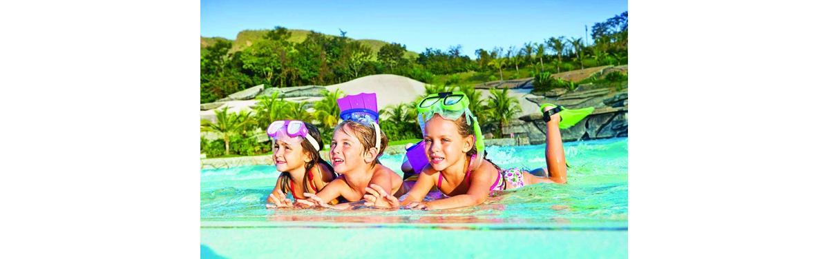 Tem alguma coisa que suas crianças gostam mais nas férias do que uma boa piscina? Pois o Rio Quente Resorts tem oito delas! E são de água quente, renovadas a cada 20 minutos. Crianças de até 6 anos podem frequentar a Piscina do Sapo, que foi inspirada no filme Alice no País das Maravilhas. As brincadeiras para as crianças são organizadas pela Turma do Cerrado, sempre ressaltando a importância da preservação ambiental. Lá também tem um aviário imenso, que reúne 300 aves cedidas pelo Ibama. Para os bebezinhos, o hotel conta com a Copa da Mamãe, espaço para preparar papinhas, e também oferece serviço de babá por R$ 20 a hora. Como se não bastassem as piscinas todas do próprio Resort, os hóspedes também podem ter acesso ao Hot Park, que é o maior parque aquático da América Latina.