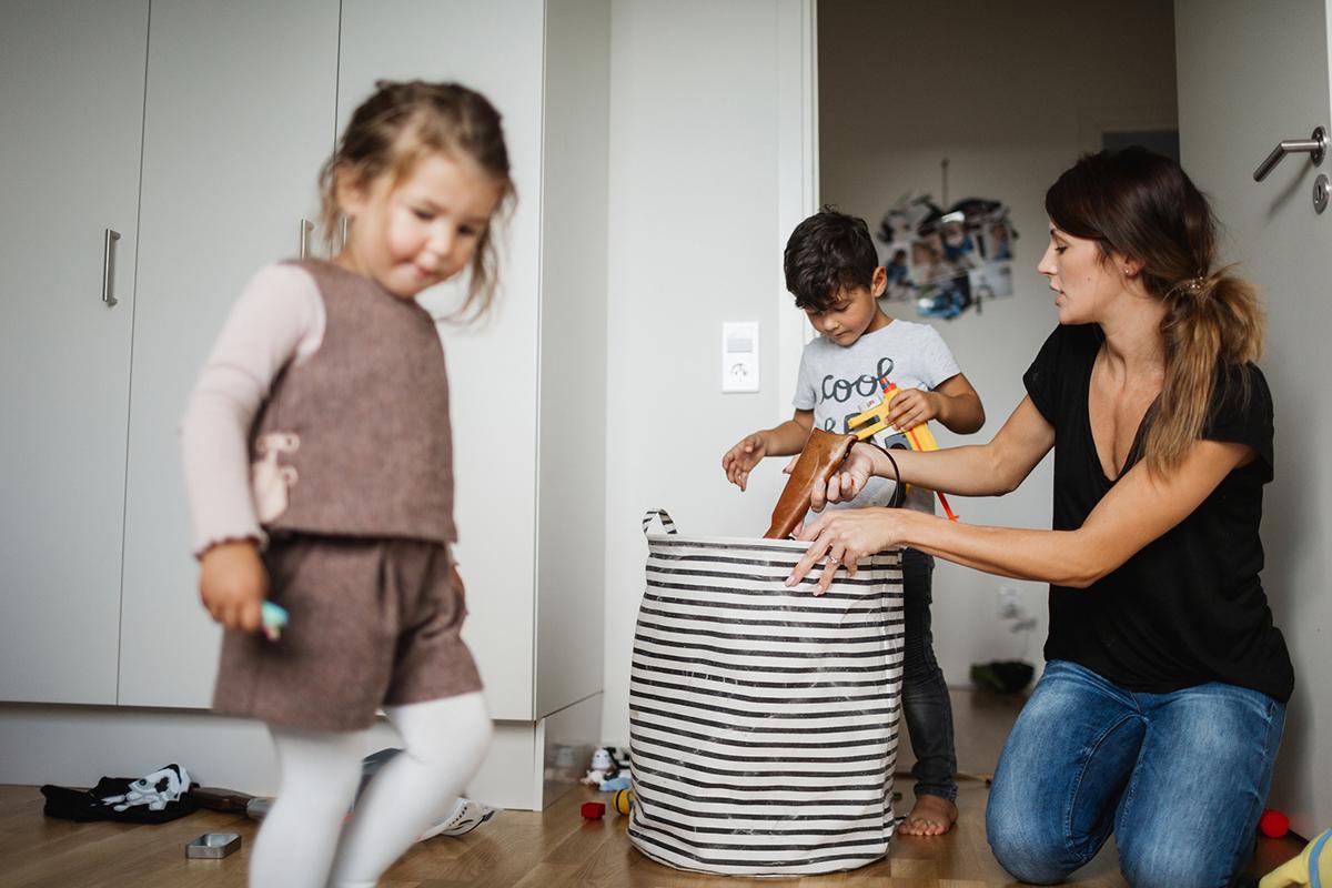 Quem pode separar, dobrar e guardar toda a roupa para a mamãe mais rápido? Você pode fazer isso com montes de tarefas pela casa – louça, roupa, organização.