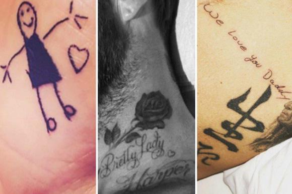 David Beckham tem várias tatuagens espalhadas pelo corpo em homenagem aos quatro filhos, Brooklyn, Romeo, Cruz e Harper (Foto: Reprodução)