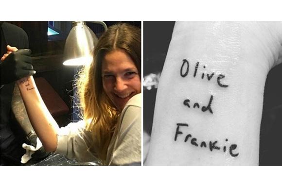 Drew Barrymore tem o nome das duas filhas tatuados no corpo (Foto: Reprodução)