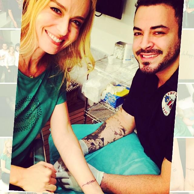 Angélica tatuou “Eva”, no pulso. No outro braço, também leva as iniciais dos outros filhos, Benício e Joaquim. (Foto: Reprodução/Instagram)