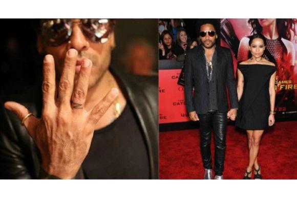 Lenny Kravitz não fez apenas uma música para a filha, mas também tatuou a primeira letra do nome dela “Z” no dedo anelar da mãe direita (Foto: Reprodução)