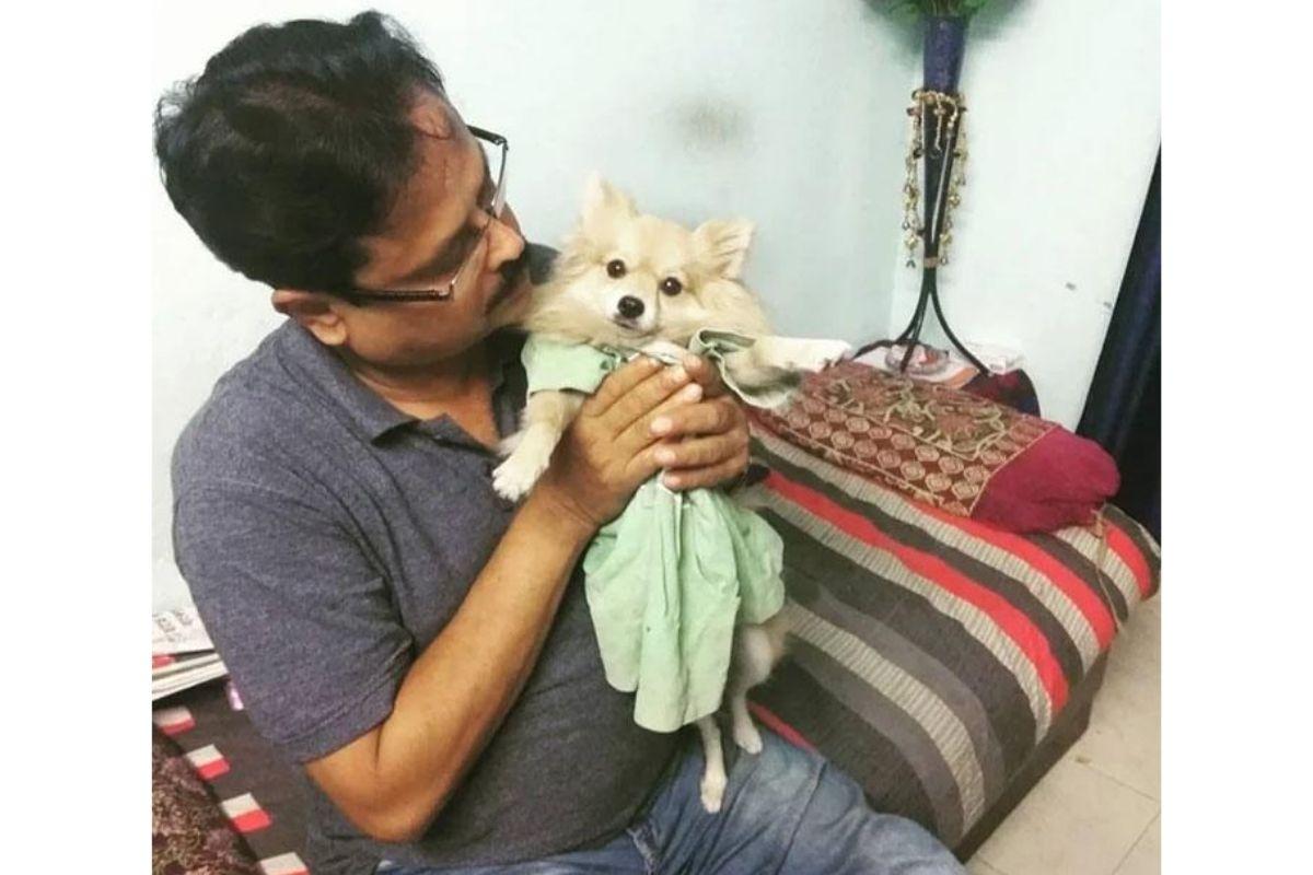 Ele disse que não queria cachorro. Tempos depois, acabou vestindo o pet com o vestido da filha, que tinha guardado para colocar na “primeira neta“.