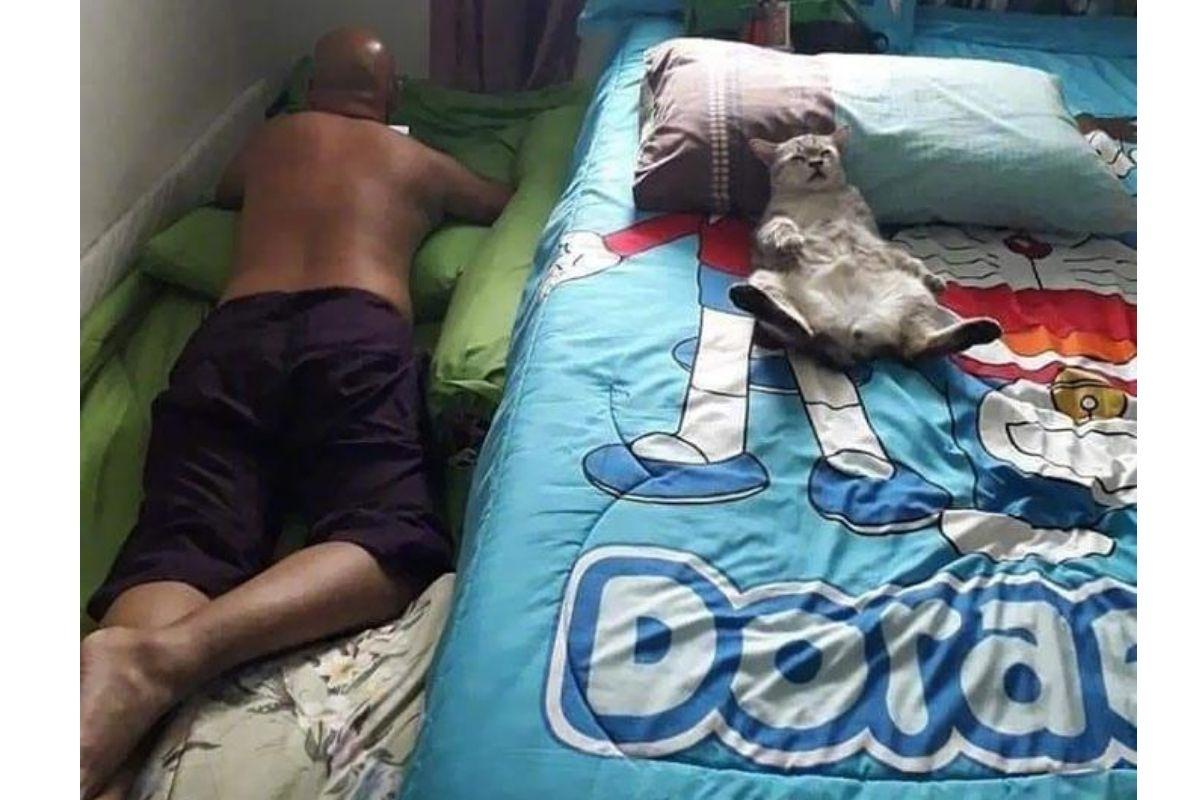 Ele falou “Nada de animais dentro da minha casa“! Tempos depois, o gato não só estava na casa, mas como ocupando o lugar dele na cama!