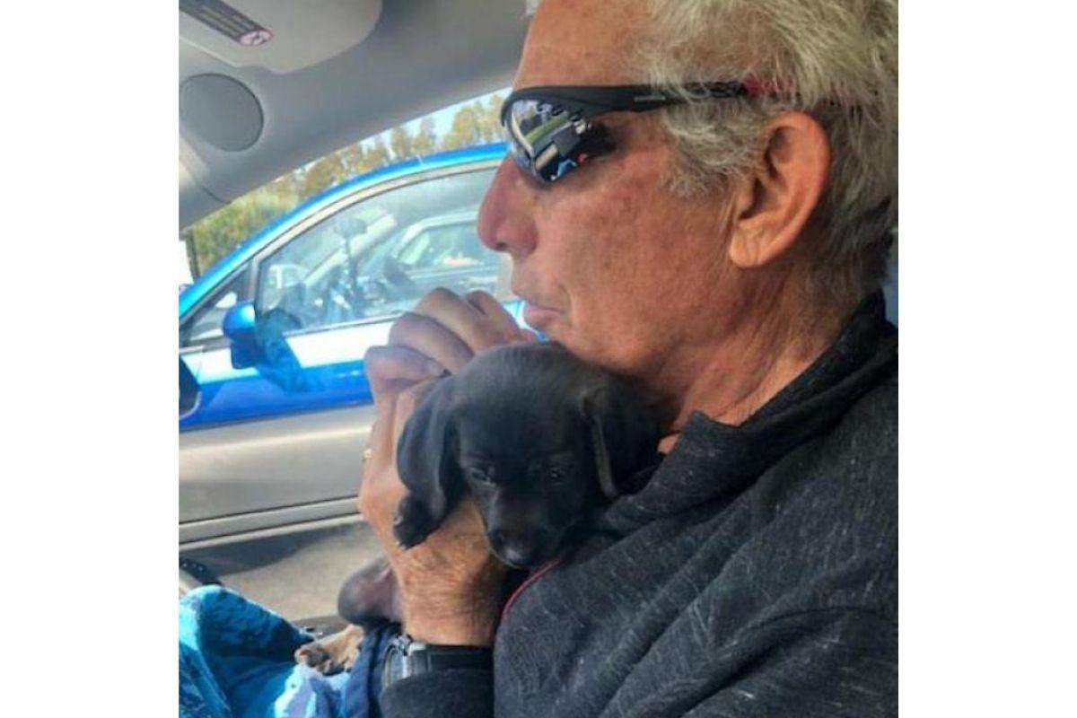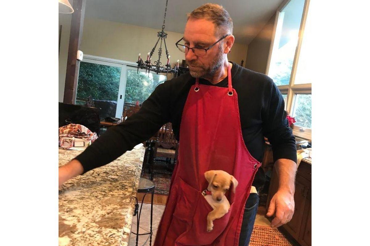 Ele nunca gostou muito de cachorros. Hoje, leva o mascote para todos os lugares !