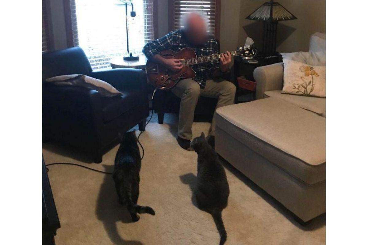 “Aparentemente meu pai toca guitarra e canta toda noite para os gatos que ele disse que não queria que adotássemos”.