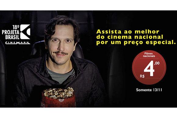 No dia 13 de novembro, uma segunda-feira, você vai ter a chance de assistir a produções nacionais pagando apenas R$4 no ingresso. Isso porque o evento da rede Cinemark, Projeta Brasil, que já está em sua 18ª edição, tem o objetivo de dedicar um dia inteiro para o cinema nacional.