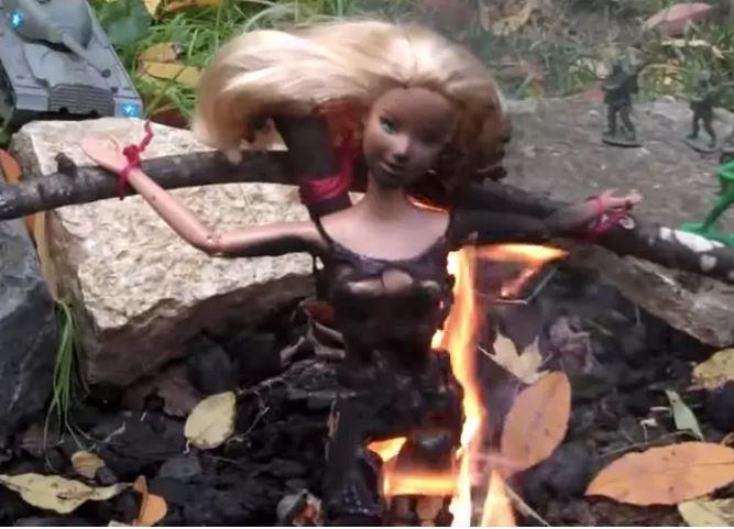 11. Testou a resistência do corpo da Barbie queimando ela.