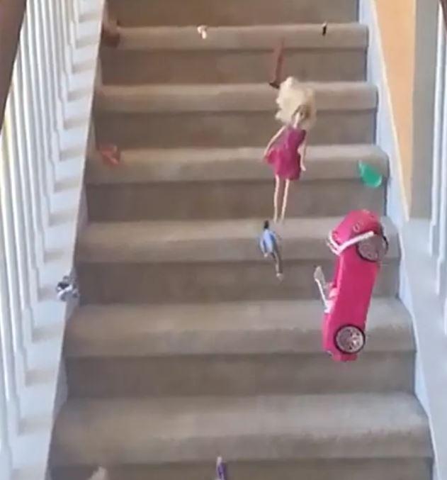 15. Decidiu testar a velocidade do carro da Barbie e o empurrou escada abaixo.