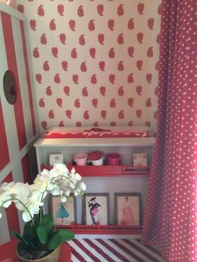 39 – Rosa para as meninas em colchas, papel de parede e tapetes, esse ambiente foi feito por Luiz Otávio Debeus e Thiago Seferian.