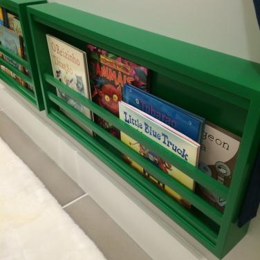 21 – Porta livros na parede são ótimos para não ocupar espaço. Essa ideia é da Caroline Gabriades Arquitetura. – www.carolinegabriades.com.br