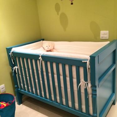 18 – Para sair do comum, a arquiteta Rosa May optou por um berço azul com parede verde, para ambientar o quarto na Mostra Quartos Etc 2015. – www.rosamaysampaio.com.br