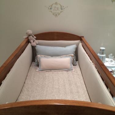 16 – Berço branco é um clássico. Pode compor com estampas, como o xadrez.