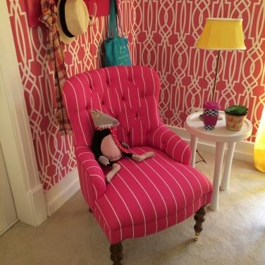 40 – Poltrona rosa combinada com detalhes em amarelo. Adoramos as cores fortes e estampas