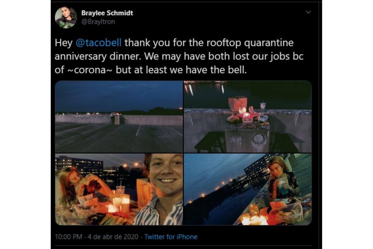 Para os que gostaram da dica anterior mas não se dão tão bem com a cozinha, aqui vai uma outra possibilidade! Para comemorar o tempo juntos, esse casal pediu comida mexicana, foi até a cobertura do prédio, prepararam uma mesa e curtiram o jantar “fora”.