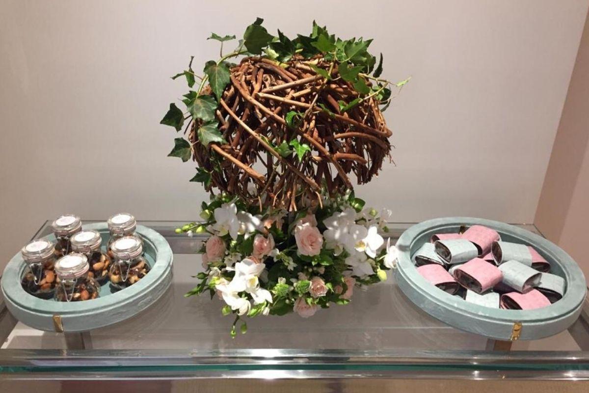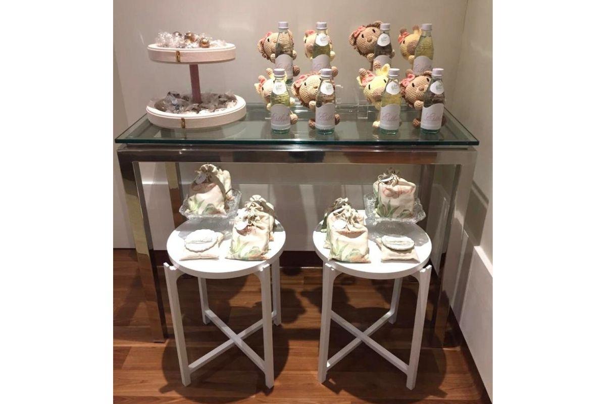 Em uma das mesas da porta de entrada da recepção, os visitantes recebem as boas-vindas com o tradicional Bem Nascido embalados em tecido.