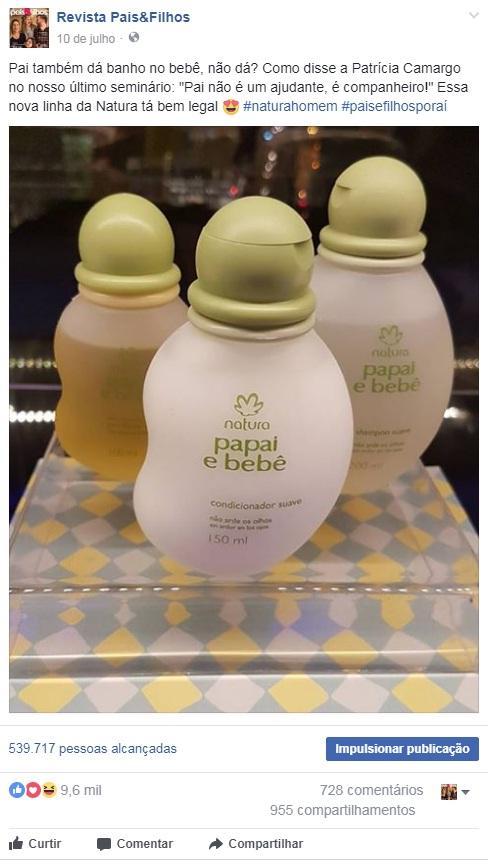 A Natura lançou uma mochila muito especial em agosto, em comemoração ao dia dos pais, e fez a Pais&Filhos pirar! A ideia da é mostrar (e defender) que os pais também são importantes nos cuidados com o bebê. Essa convivência ajuda a estreitar o vínculo paterno. Por isso a linha “Mamãe e Bebê” em agosto virou “Papai e Bebê”. Nós publicamos nas nossas redes sociais a novidade e bombou!