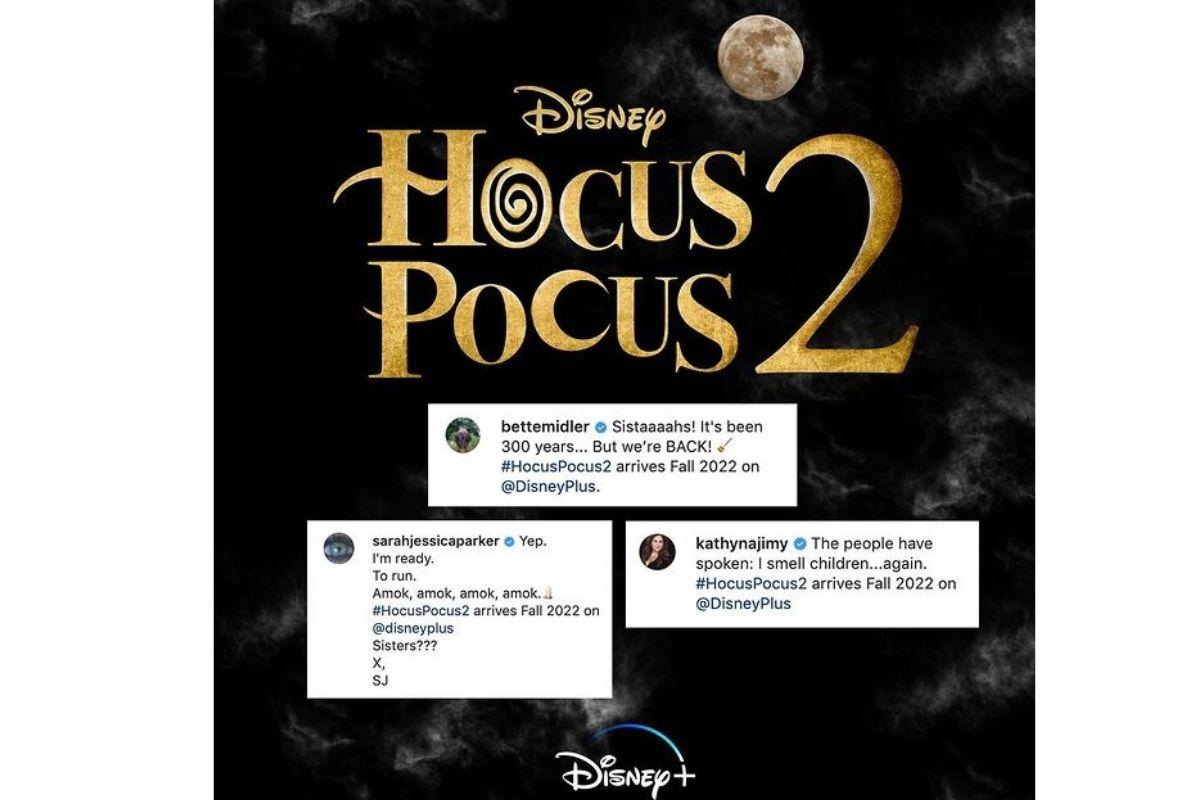 “Irmãaaas! Já se passarem 300 anos… Mas nós estamos de volta! ‘Abracadabra 2’ será lançado durante o outono em 2022 na Disney+”, contou Bette Midler em seu Twitter. “É. Eu estou pronta. Pra correr. Amok, amok, amok, amok. Irmãs? Beijinhos”, celebrou Sarah Jessica Parker. “As pessoas falaram: Eu farejo crianças… De novo!”, escreveu Kathy Najimy.