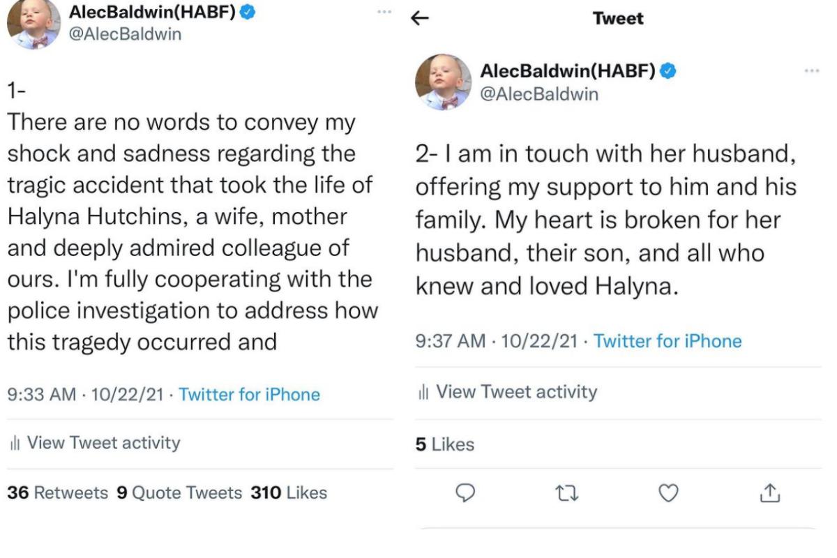 Foi através de duas postagens feitas no perfil pessoal que o artista se pronunciou sobre o acidente. “Não há palavras para expressar meu choque e a tristeza em relação ao trágico acidente que tirou a vida de Halyna Hutchins, esposa, mãe e colega de trabalho, profundamente admirada. Estou colaborando totalmente com a investigação policial”, começou ele na primeira publicação. Para conferir esta publicação feita por Alec, clique aqui.