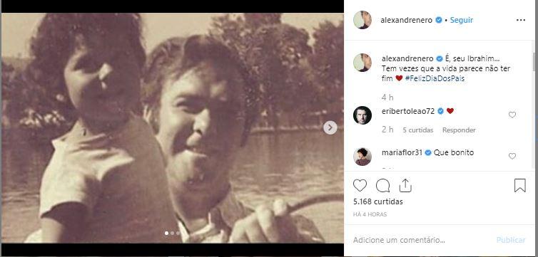 Na segunda, o ator publicou uma foto da infância com o pai e, em seguida, com os dois filhos. “É, seu Ibrahim…”, escreveu na legenda. “Tem vezes que a vida parece não ter fim. #FelizDiaDosPais”.