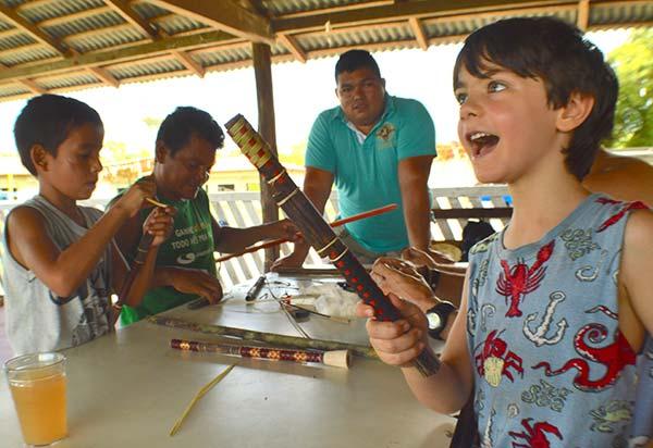 Leon ficou mais do que feliz com a zarabatana que ele mesmo fez Foto: Laís Carvalho