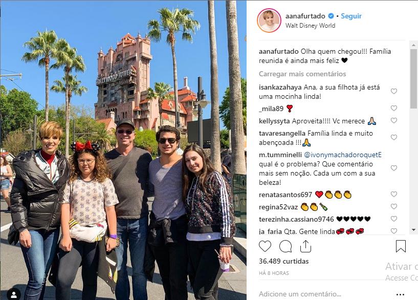 Ana publicou uma foto com o marido, diretor Boninho, e a filha, Isabella na viagem. “Família reunida é ainda mais feliz”, escreveu ela na publicação.