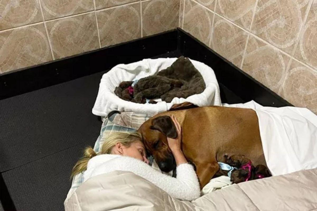 Ana passou a noite desta sexta-feira (18) ajudando Esmeralda, da raça rhodesian ridgeback, no parto. A apresentadora foi filmada pelo marido, dando suporte emocional para que o pet desse à luz.