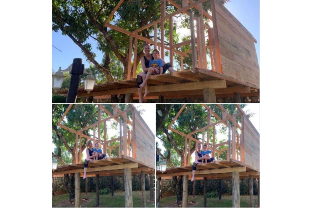 A mãe famosa já havia falado que tinha um sonho de construir uma casa na árvore para o filho no terreno de sua mansão no interior de São Paulo. “Sempre sonhei em ter uma casa na árvore, desde criança. E agora o meu filho pediu uma. Juntei o pedido dele com o meu sonho e construí uma no quintal de casa”, diz Ana. “Estou com algumas bolhas na mão de tanto martelar.”