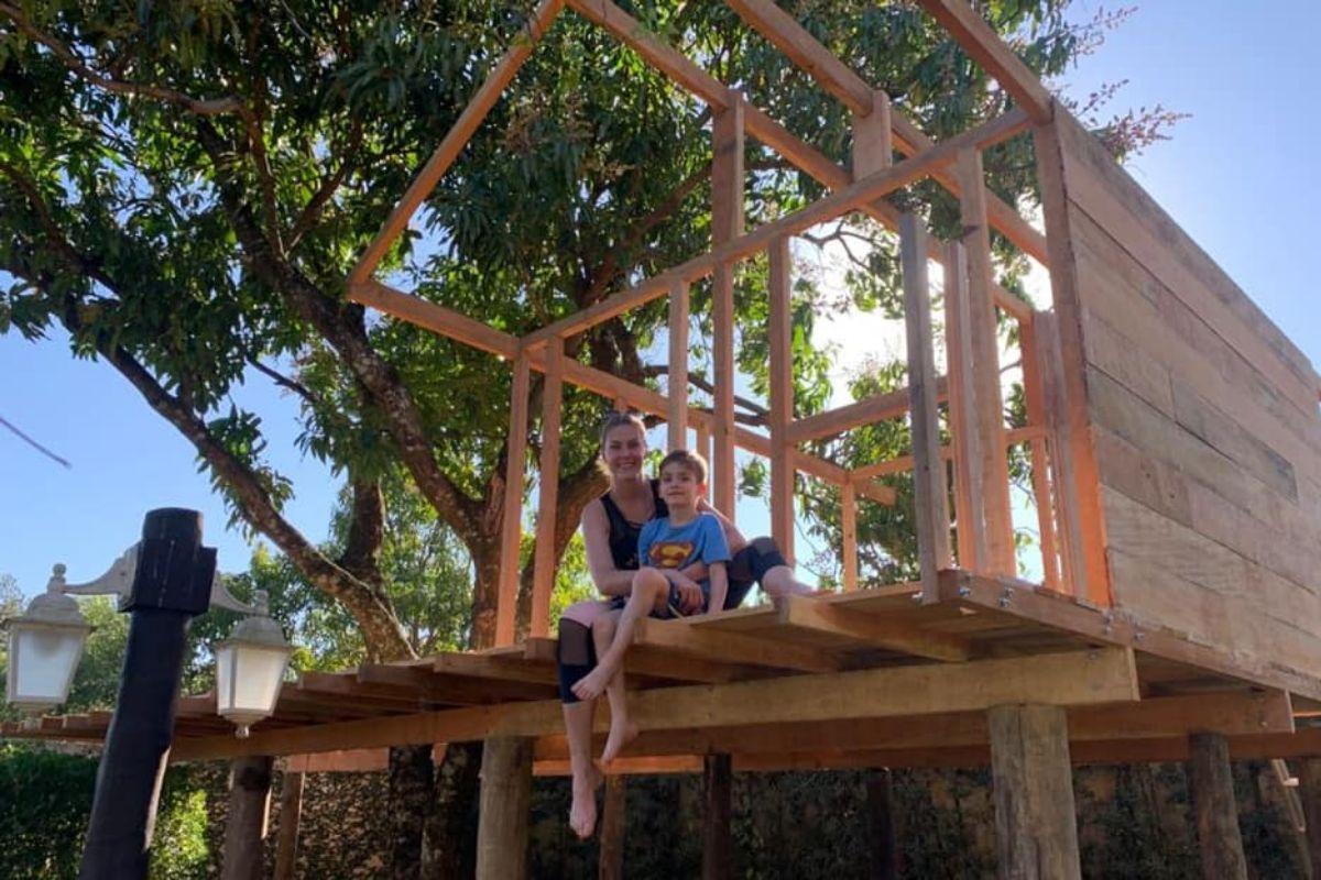 Apresentadora compartilhou o momento com o filho já em cima da casa na árvore. O local já conta com sua base, uma parede e toda a estrutura interna. Ao mostrar a casa da árvore do filho em construção, a apresentadora disse: “Bom dia!! A casa na árvore do Alezinho tá tomando forma. Estou tão feliz com esse projeto!!! Não sei quem vai passar mais tempo lá – meu filho ou eu?! Esse final de semana adiantamos bem a obra”.