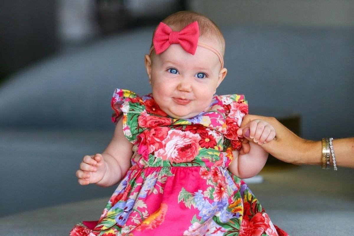 Nas imagens a pequena apareceu toda estilosa, com vestido colorido, mas majoritariamente rosa, cheio de flores e laço na cabeça combinando, além de sandália linda. “Pode esmagar agora ou depois?! Aprendeu a fazer caretas e não para mais”, legendou Ana Paula.