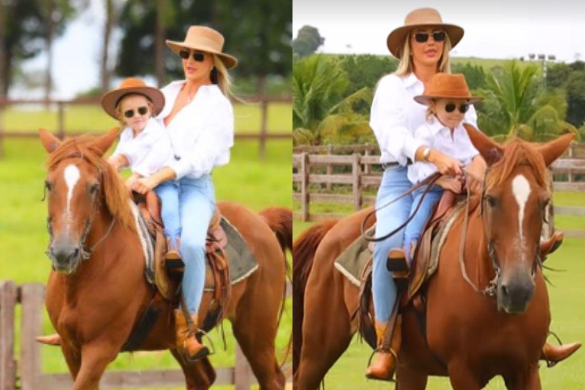 A modelo Ana Paula Siebert, de 35 anos, usou seu perfil na rede social Instagram para fazer alguns registros do dia em família. Neste sábado, 11 de março, ela aproveitou para andar a cavalo ao lado da filha, Vicky, de 2 anos, fruto de seu relacionamento com o empresário Roberto Justus, de 67, combinando seu look com o da mais nova. As duas estavam com o estilo de ‘cowgirl’.