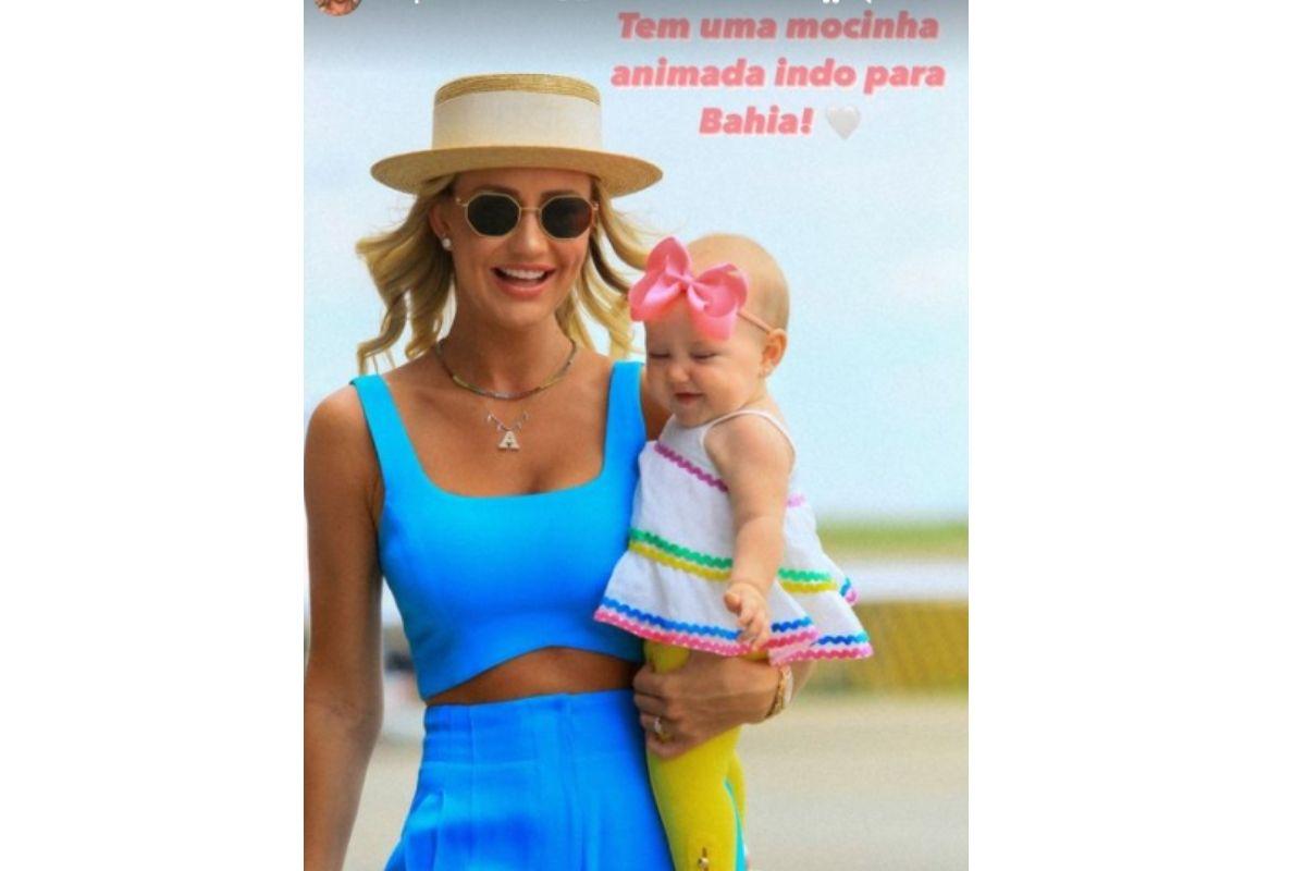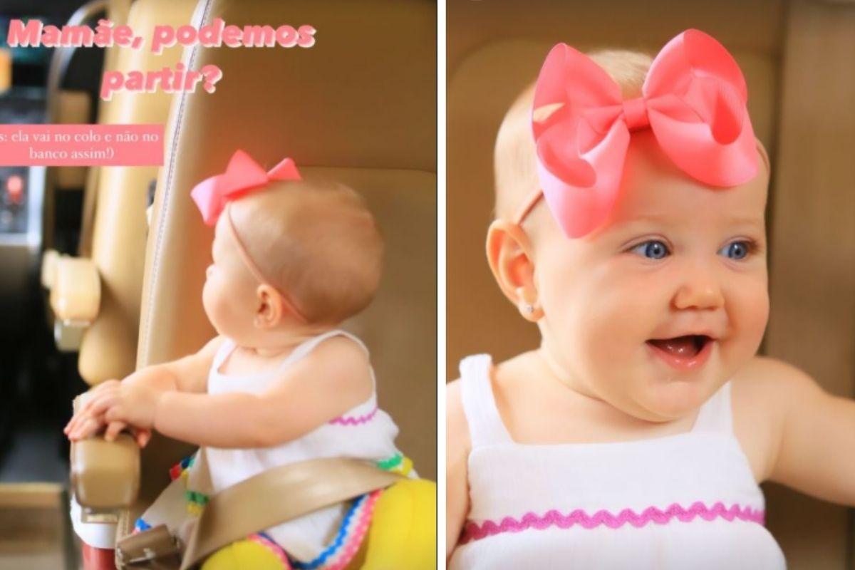 A menina posou sentada nas poltronas do avião e depois foi flagrada toda sorridente pela mãe. “Mamãe, podemos partir?”, escreveu Ana Paula em uma das publicações. “Temos uma mocinha animada para ir à Bahia”, disse na outra.
